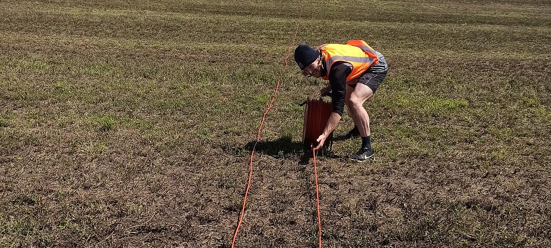 Induced Polarisation (IP) is a survey method which measures the chargeability of materials in the subsurface, such as massive sulphide deposits. These hold a “charge” for a short duration of time, before dissipating, similar to that of a capacitor. A current is directly applied to the ground and the voltage response through time is captured at receiver electrodes.